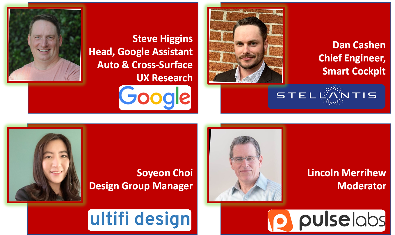 I was very excited to have led an outstanding panel at the Covesa conference in Dearborn this past October on the vehicle in-cabin evolution. The panel brought together experts from tech companies and automakers to discuss how to orchestrate technology in vehicle interior design. The panel was called “In-Cabin Choreography” and the panelists were Steve Higgins from Google, Dan Cashen from Stellantis, and Soyeon Choi from Ultifi Design (part of GM). Together they brought a vast array on knowledge and insights from the current roles and their rich histories. As a bellwether of the speed of change, the oldest logo among the four of us is “Google.”